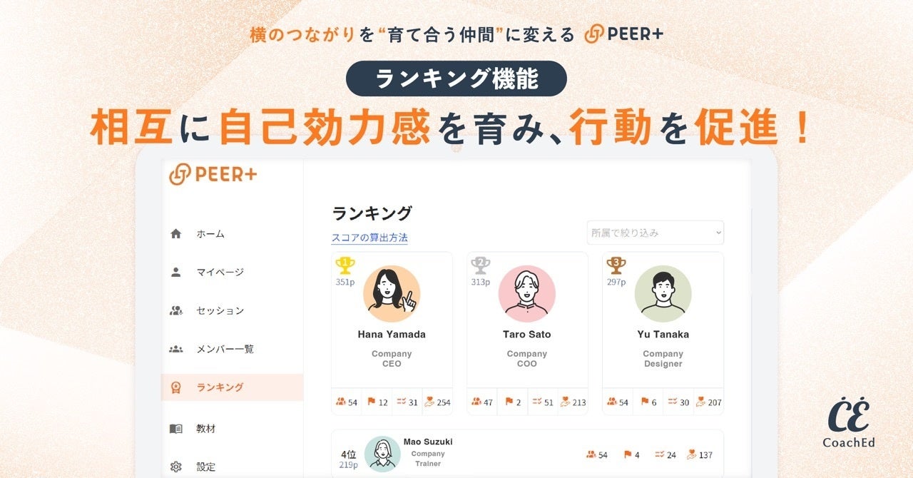 日本初のピアコーチングの導入・定着のためのクラウドツール「PEER+(ピアプラス)」、成長や貢献を可視化し相互に自己効力感を育む新機能をリリース