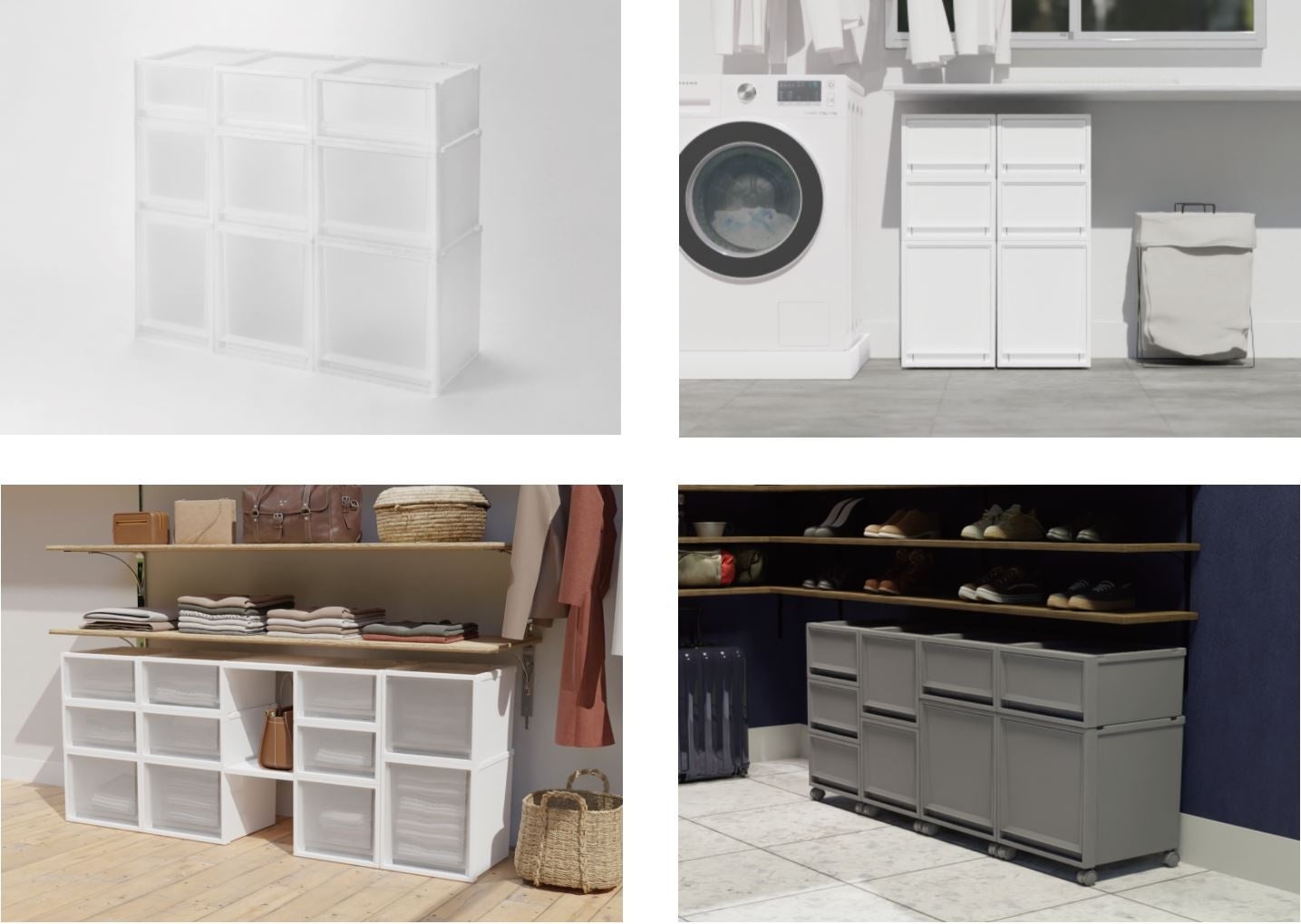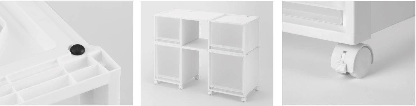 収納スペースが限られるひとり暮らしのワンルームでも置きやすいコンパクト性とシンプルなフェイスデザインを追求しつつ、フィッツケースの期待を裏切らない高い堅牢性を実現しています。使いやすさにこだわった9つのサイズ、連結できる棚板アイテムや別売りのキャスター、選べるカラーバリエーション4色と多様な暮らしに寄り添う豊富なラインナップで、皆様の快適な暮らしを応援いたします。