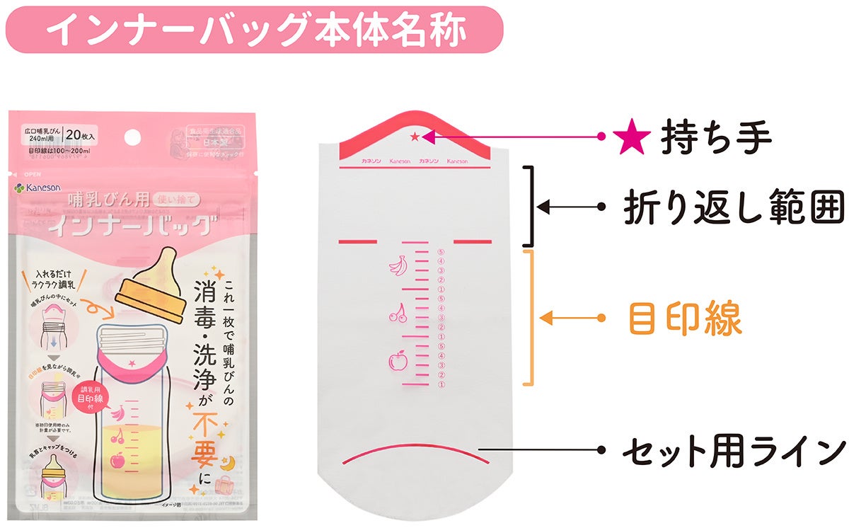 【哺乳びん用インナーバッグ】 お客様の声を活かしてリニューアル!調乳用目印線でより使いやすく。