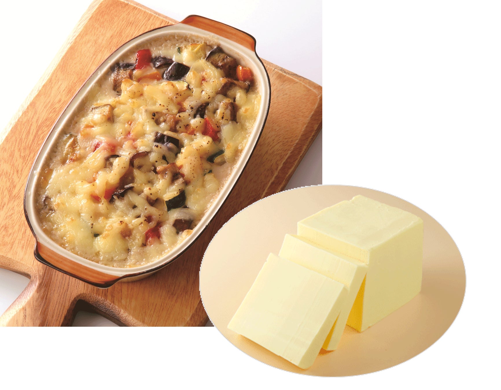 乳原料不使用ながら乳製品と同等以上のおいしさと使いやすさに加え、セミハードタイプなので、シュレッド加工やダイス加工など様々な用途に対応できます。加熱、非加熱(生食)でも使用可能で、加熱するとチーズのようにとろける物性で冷めても硬くなりにくいので、おいしいプラントベースフードメニューに最適です。