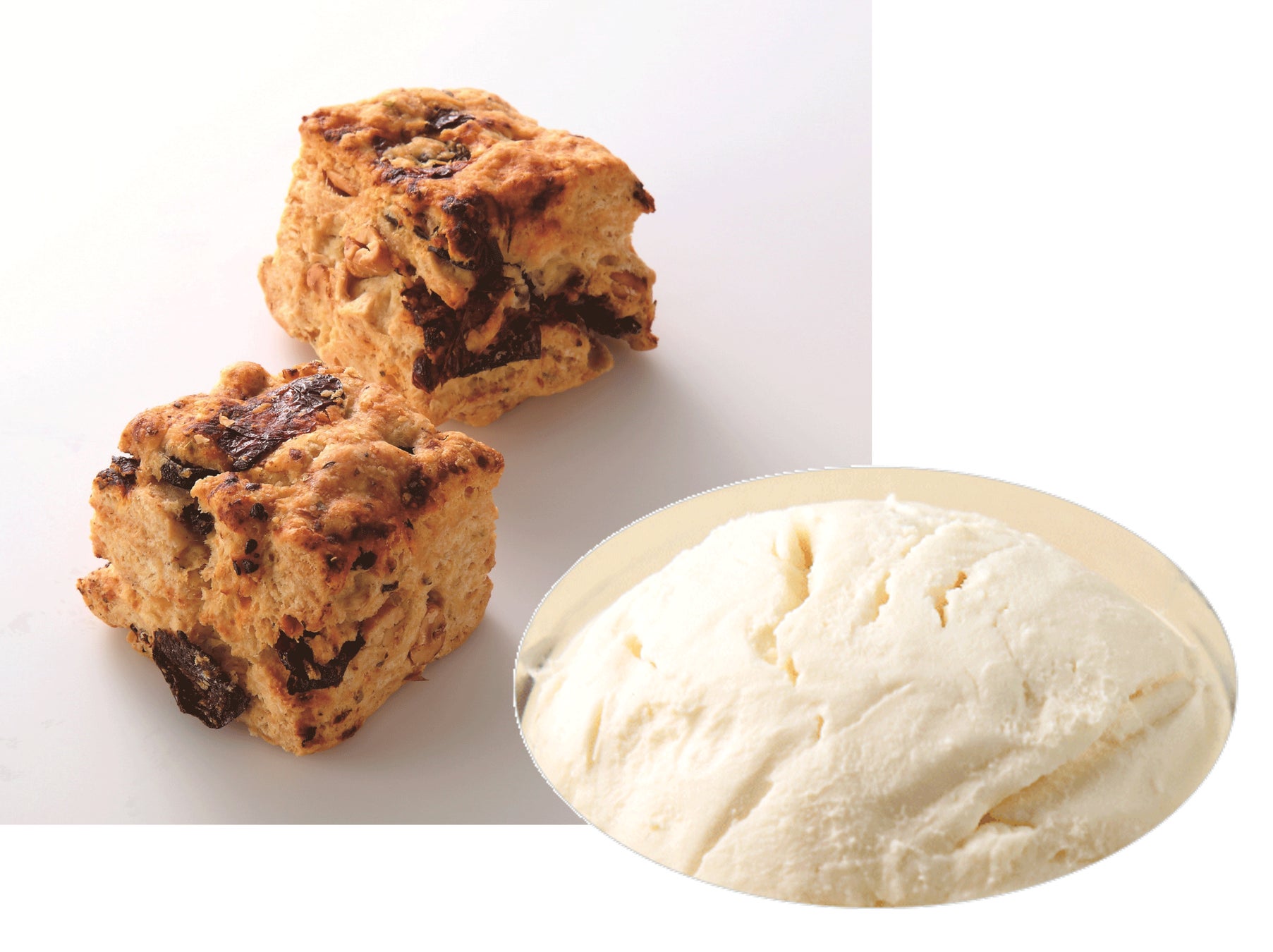 ジャムや抹茶等の呈味素材と混合するだけでオリジナリティのあるフィリングを簡単に作ることができます。これまで必須だった加糖や油脂の調温工程を省略できる他、必要な分を混合するだけで済むため、製パン・製菓製造工程における省力化と過剰在庫(生産ロス)の削減に貢献します。