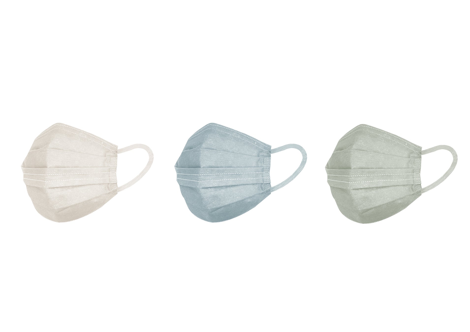 オンでもオフでも使えるカラーに関して取引先男性陣から最も支持が高かったのはなんとグレー。職場でも営業中も身に着けているカラーの率はグレーが多いという意見を多数受け、同じグレーでも柔らかいトーンを基調とした3色をセットにしたカラーマスクが誕生しました。ブリリアントマスクシリーズでもメンズライクだと人気の高かったミルキーグレー、同じグレーの色目でもスーツやジャケットに合わせて職場での利用を意識したブルーグレー、そして淡い発色が洋服を選ばずに使えるグリーングレーの3色で、カラーマスク初心者でも着用しやすいことが特徴的。