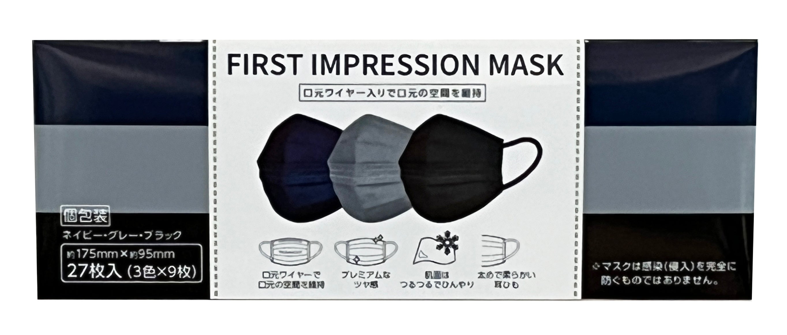 カラーマスクに初挑戦の方にも着用しやすい定番色のブラック・グレー・ネイビーの3色入り!