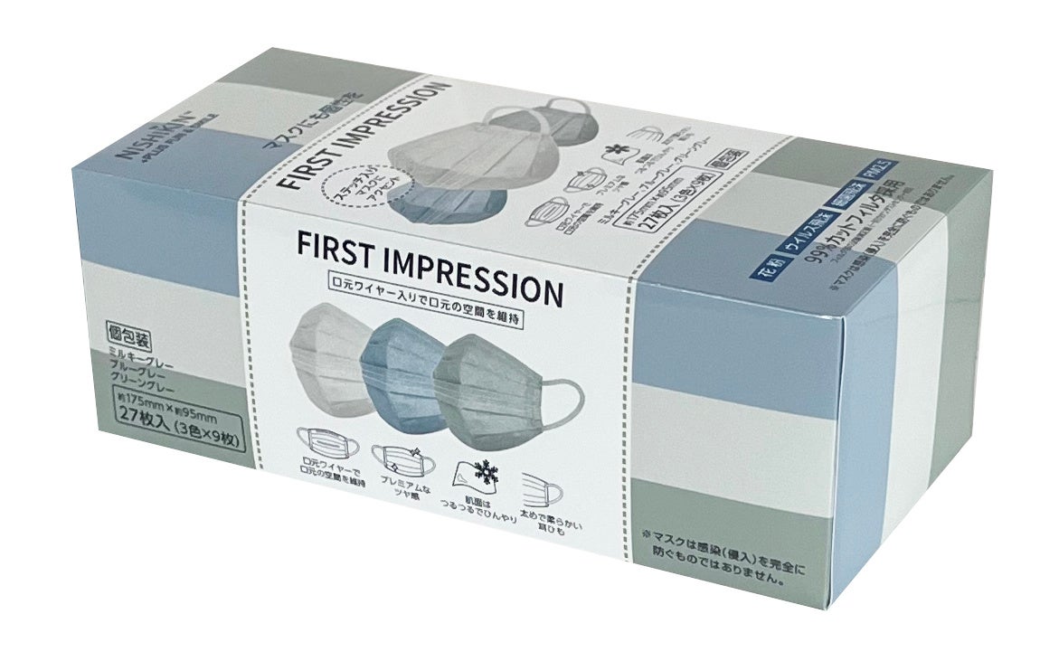 商品名:ニシキン ファーストインプレッションマスク プリーツ型00 個包装 27枚