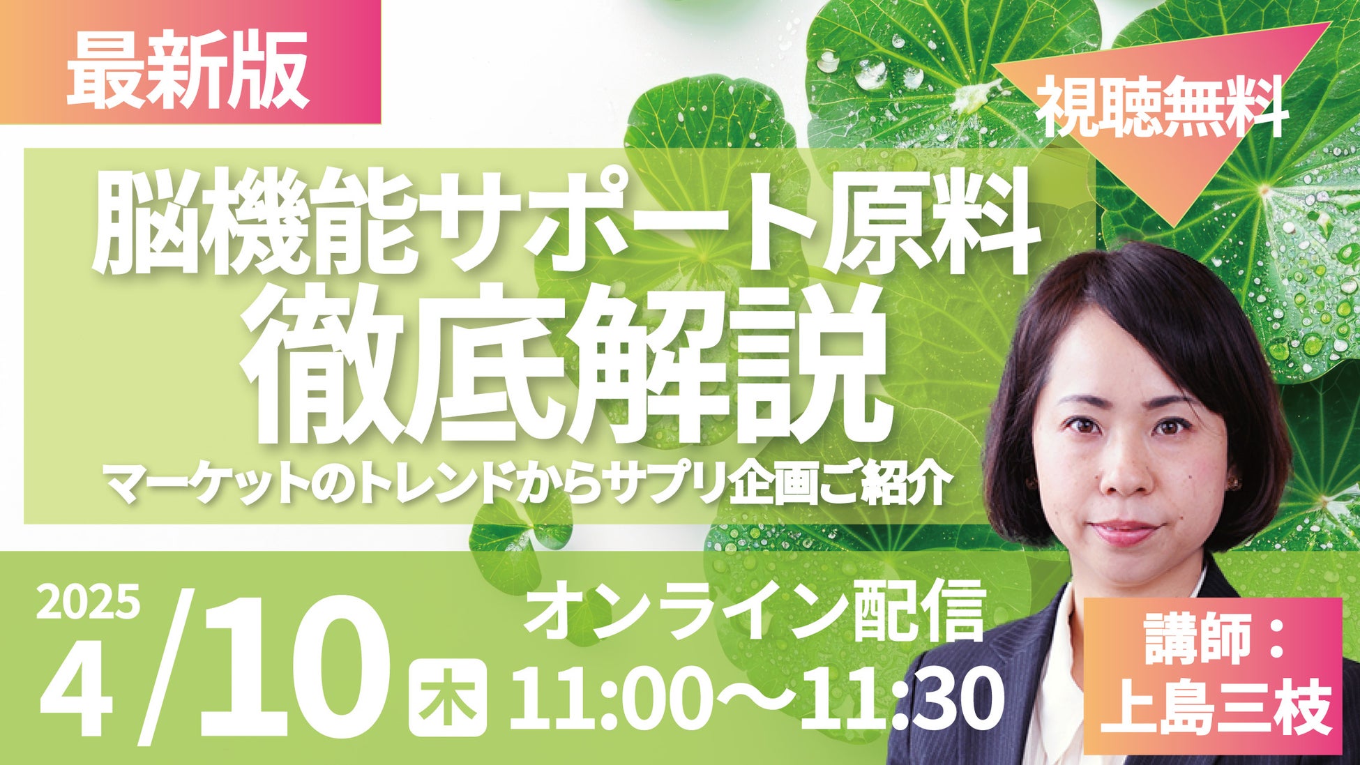 一丸ファルコス株式会社(本社:岐阜県本巣市、代表取締役社長:安藤芳彦)は、2025年4月10日に「脳機能サポート原料・食べるCICA 『ARACA(アラカ)』」をテーマとした無料セミナーを実施します。ARACAは、世界初のツボクサから抽出されたアラリアジオールを含む革新的な健康食品原料です。脳機能をサポートし、小胞体ストレスや酸化ストレスを軽減することで、認知機能の向上に寄与します。科学的根拠に基づいた安心・安全な製法で、日々の健康維持をサポート。スポーツパフォーマンス向上や集中力アップを求めるすべての人に最適な素材となっています。