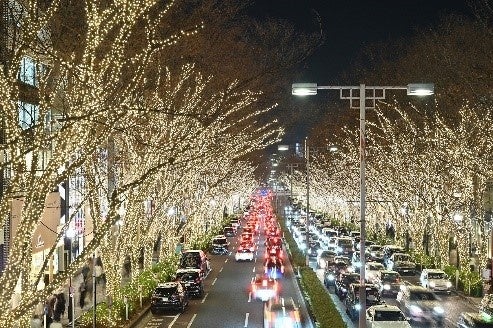 ケヤキ並木約1kmが約90万球のLEDで照らされ