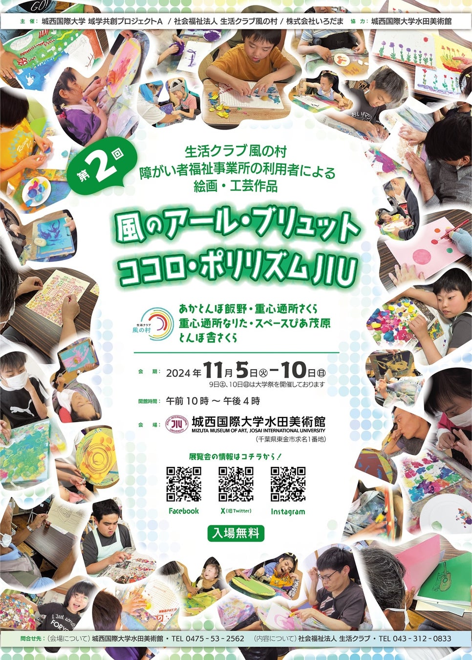 2024年11月5日(火)~11月10日(日)午前10時~午後4時、城西国際大学 水田美術館(千葉県東金市求名1番地)にて、生活クラブ風の村としては3回目のアール・ブリュット展を開催いたします。