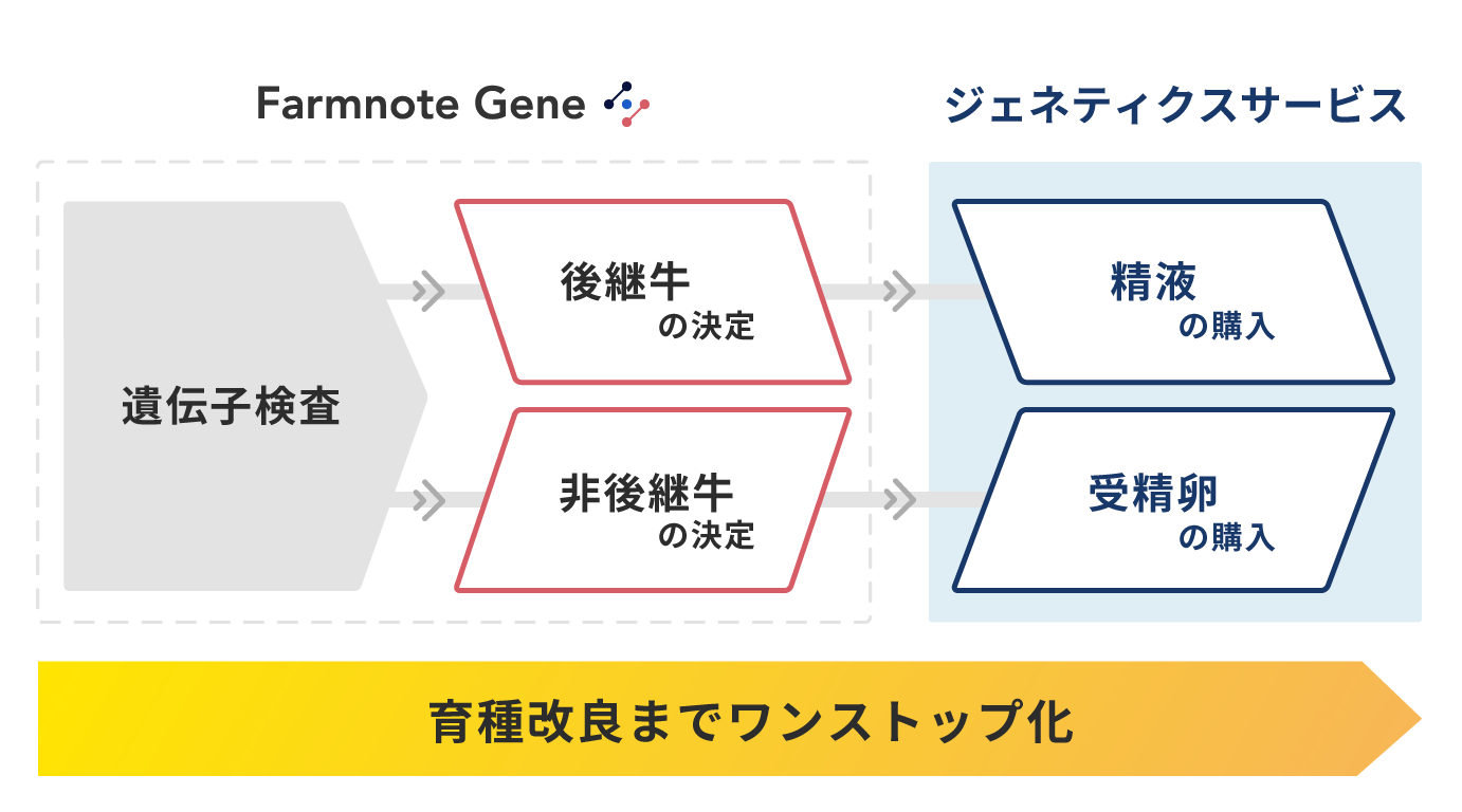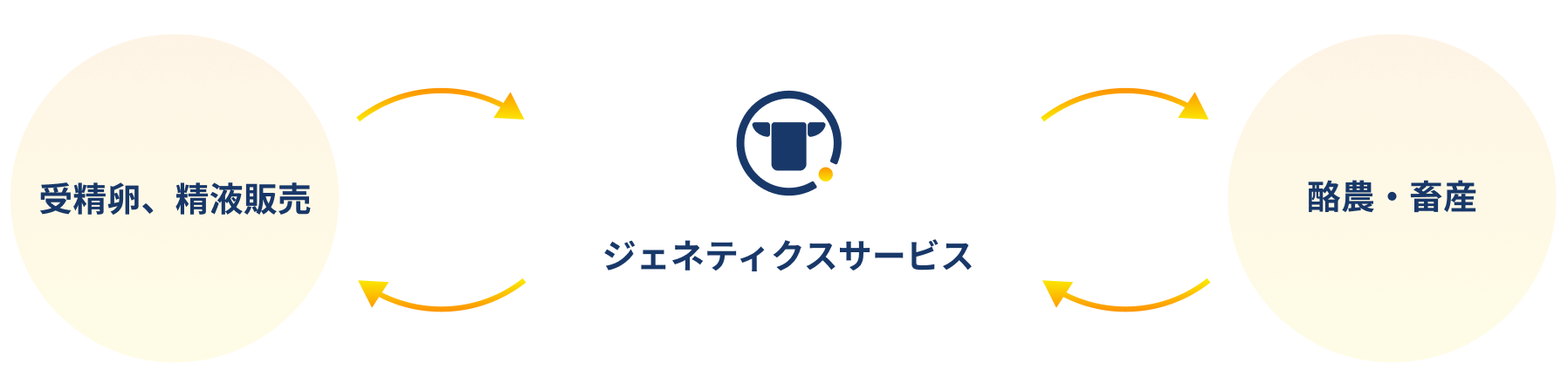 ジェネティクスサービスは判断情報に一歩踏み込み、受精卵の遺伝資源の提供も担うことで、育種改良までをワンストップで提供するものです。