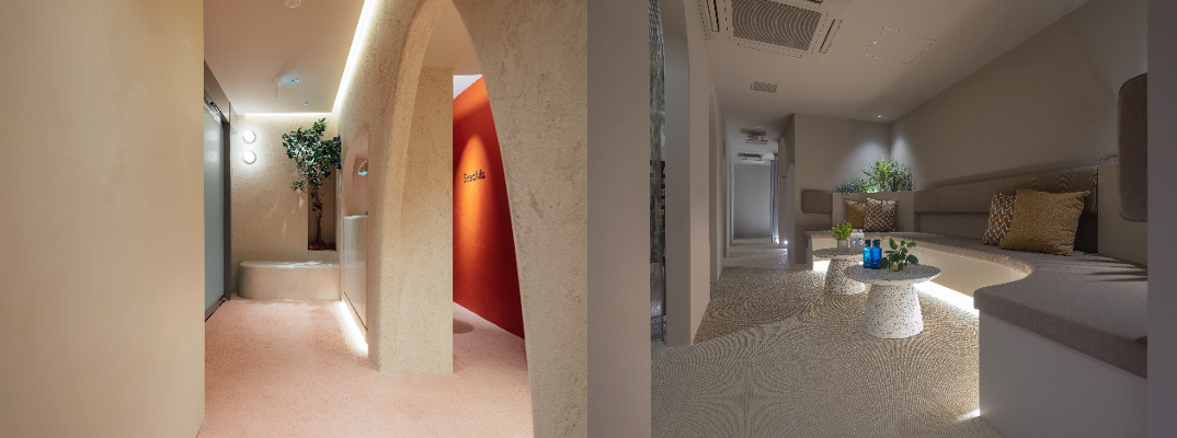 自然のみが持つ有機的で柔らかなフォルムと色で、癒しの別世界へ誘うような空間をイメージしたデザインで、日常から解き放たれるようなリラクゼーション体験を提供します。