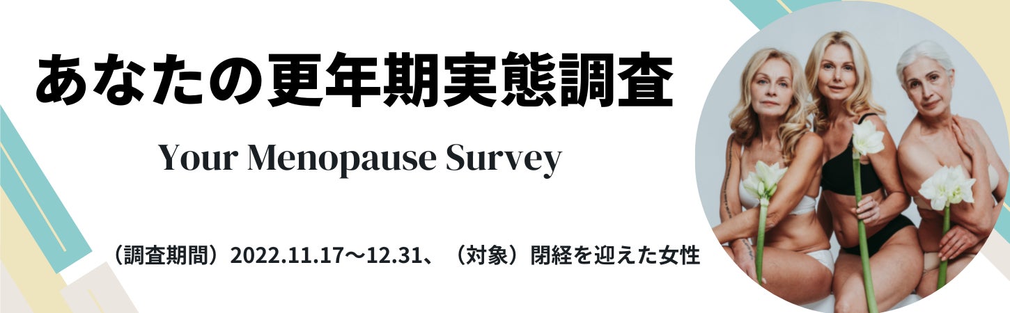 【あなたの更年期実態調査】実施スタート。閉経後である現在と更年期であった時期における日常生活や仕事への影響、健康・更年期リテラシー、支援ニーズを明らかにする。