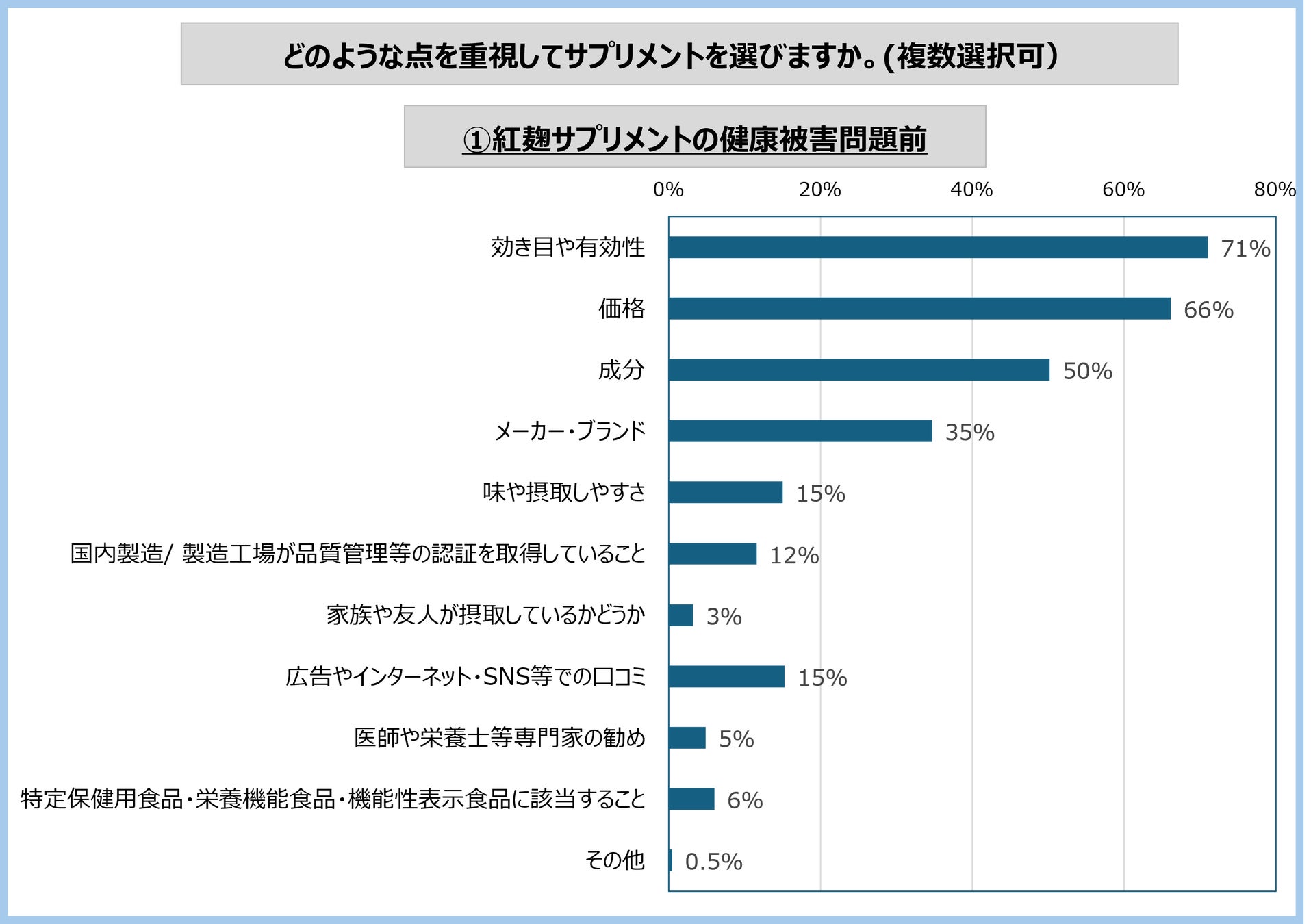今回の紅麹入りサプリメント健康被害問題の前後で、サプリメント選定において重視するポイントがどのように変化したか、調査しました。