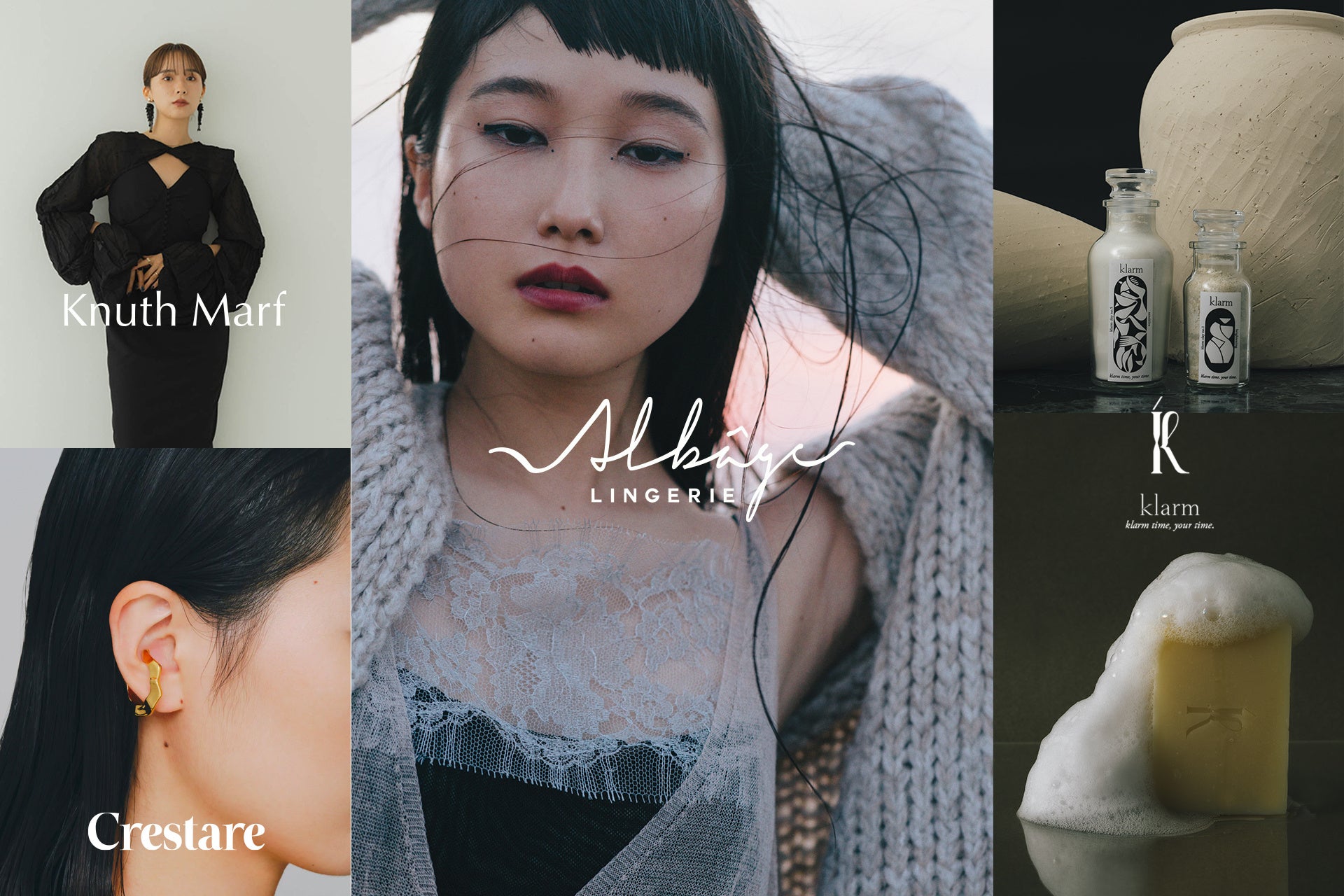 自社アイテムに加え、新進気鋭ブランド「Knuth Marf」「Klarm」「Crestare」「I'm La floria」「iroha」をキュレーション。