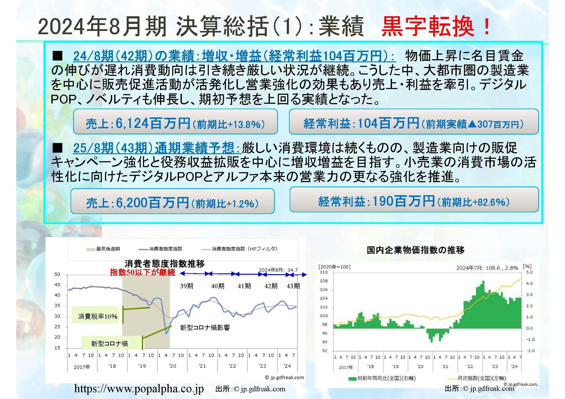 アルファ、5期ぶりの黒字決算を発表 営業力強化で業績回復(2024年8月期通期決算)