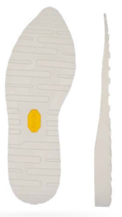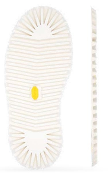 ヴィブラムのVi-Liteコンパウンドを使用したブロックラグです。このソールは、ヴィブラム・カラルマートを応用したラグと、テキスタイルのデザインにインスパイアされた深い溝が特徴です。高いラグと低いラグがトラクションを高めています。このソールは軽量で、カジュアルシューズやファッションブーツに最適です。