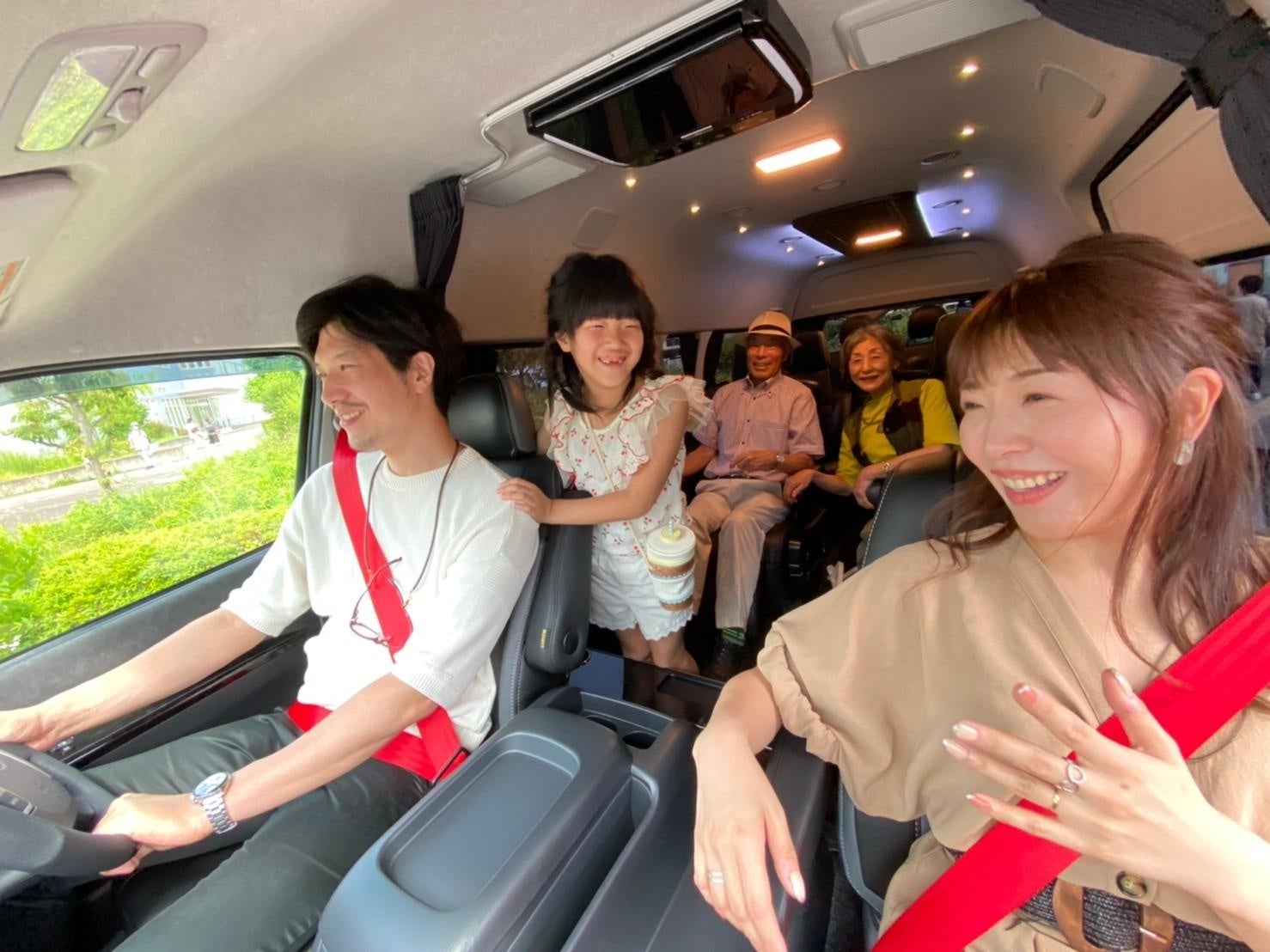 当社が提供する車両は、2〜3列目のシートに高級車などで使われているアームレスト付きのキャプテンシート(1人掛けシート)を採用。10人まで乗ることができる大型車であるにも関わらず、通常のワンボックスカーに比べ、後部座席もゆったりとした作りとなっています。