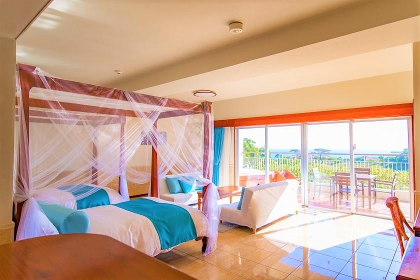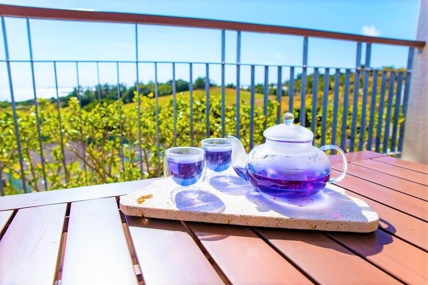 ・朝食付き ・客室アメニティ「沖縄県産バタフライピーティー HARVEL」お1人様1パック ・客室アメニティ「HARVEL バタフライピー バスボム」1室 1個 |