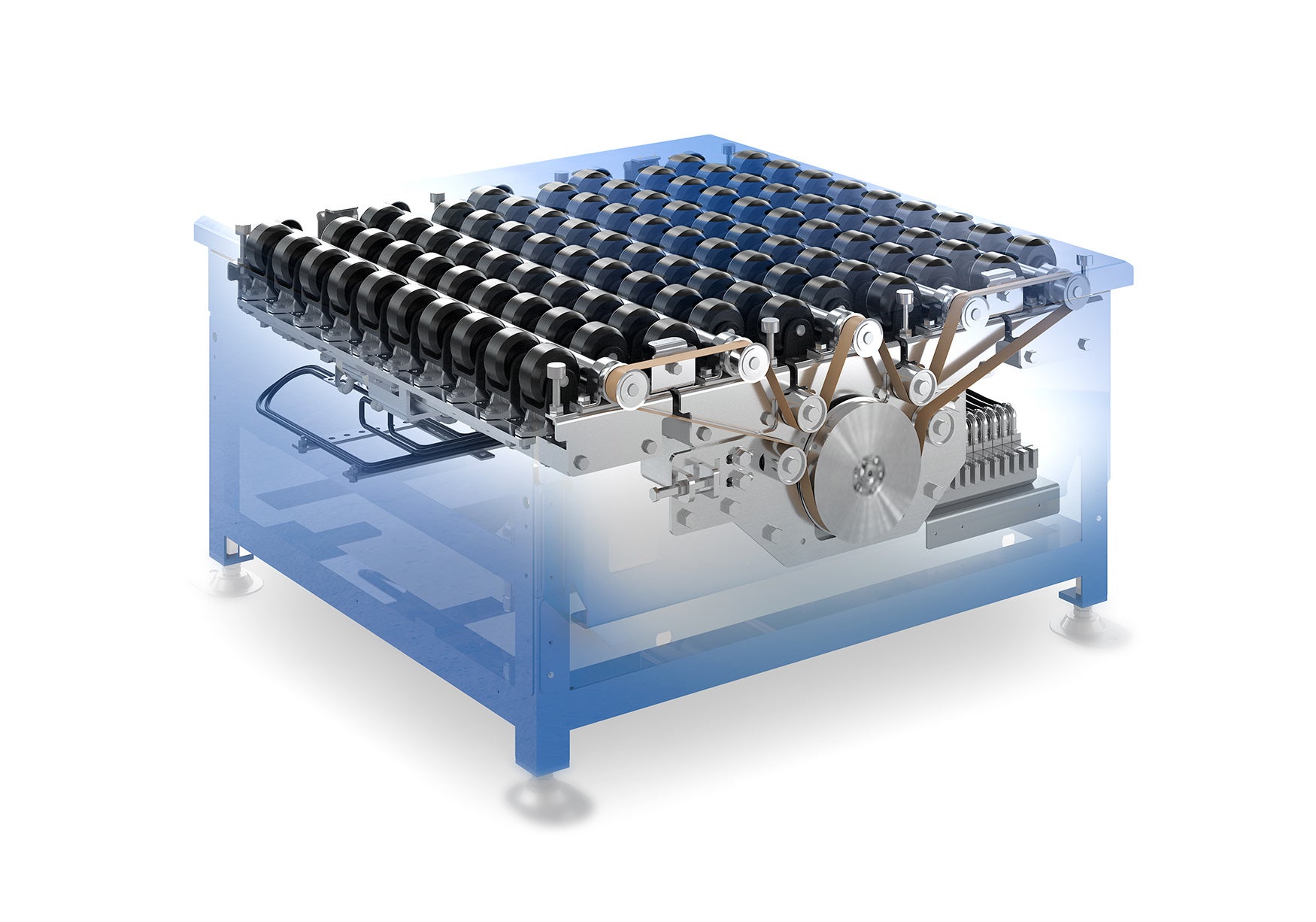 1つのモータですべてのローラを回転させるシンプル構造が特長