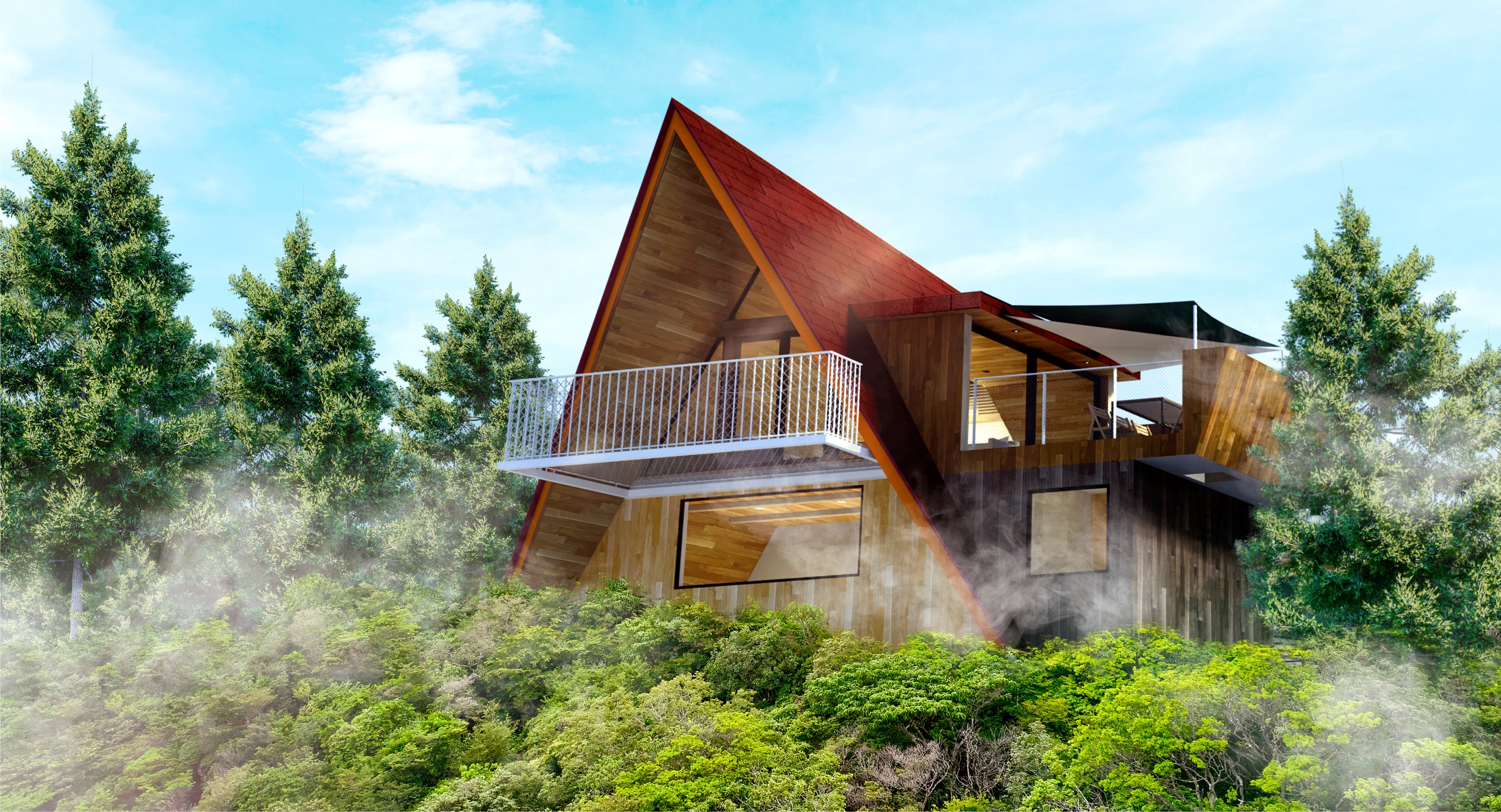 このSKY COTTAGEは、三角形のテントシェイプが特徴的です。屋外グリルテラスを備え、食体験をさらに感動的に彩るだけではなく、ビューバスルームを備えるなど、オーセンティック&プレミアムなアウトドア宿泊体験を楽しめます。