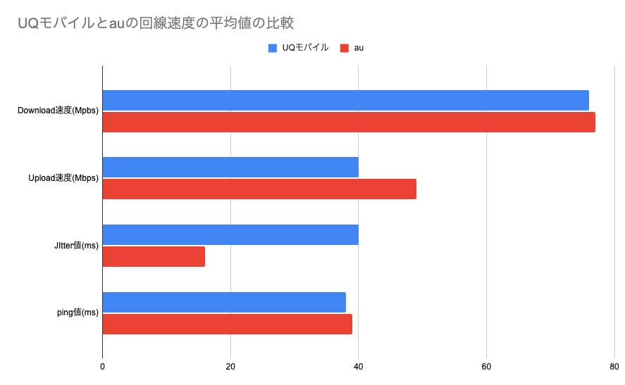 Upload速度:UQモバイルの速度はauの速度の約81.6%のスピードが出ている