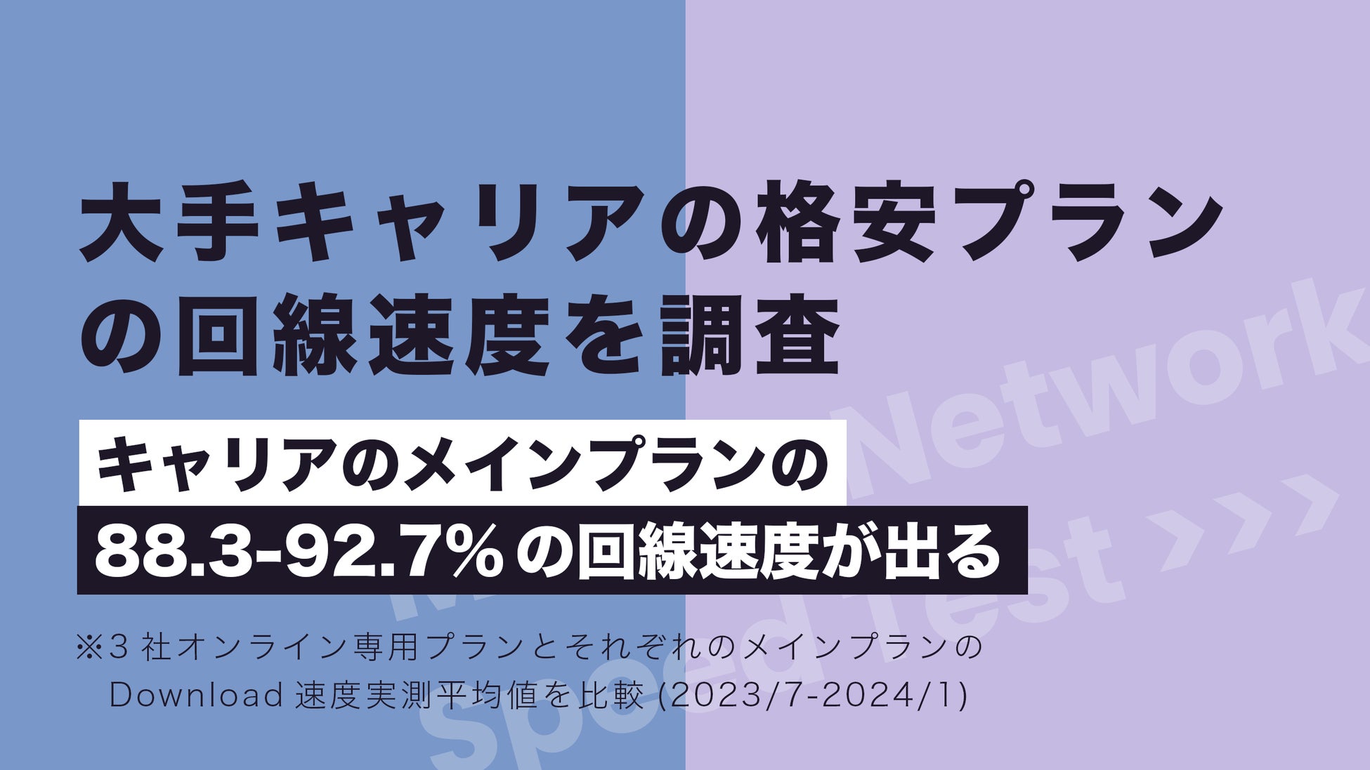 【3社のオンライン専用プランのDownload速度は約88.3%〜92.7%とメインプランに迫る速度】
