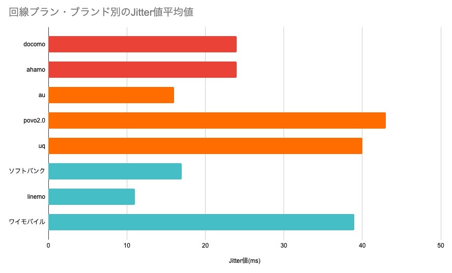調査方法:回線速度測定・投稿Webサイト「アプリポ回線ちぇっく」に投稿された各モバイル回線ブランドのスピードテスト結果データ(Download速度、Upload速度、Ping値、Jitter値)の平均値を算出