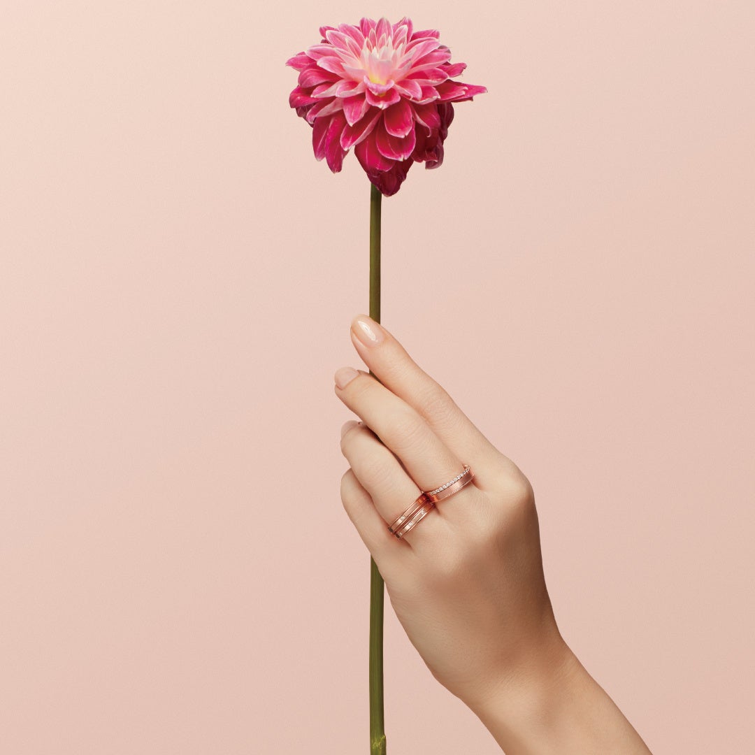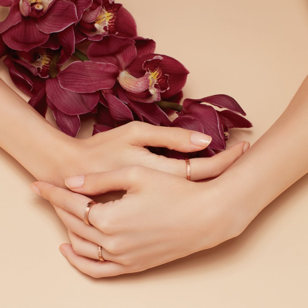 気高さと華やかさを兼ね備えた本新作は、婚約・結婚指輪としてはもちろん、ファッションリングとしても着用が可能。日常使いがしやすいデザインです。