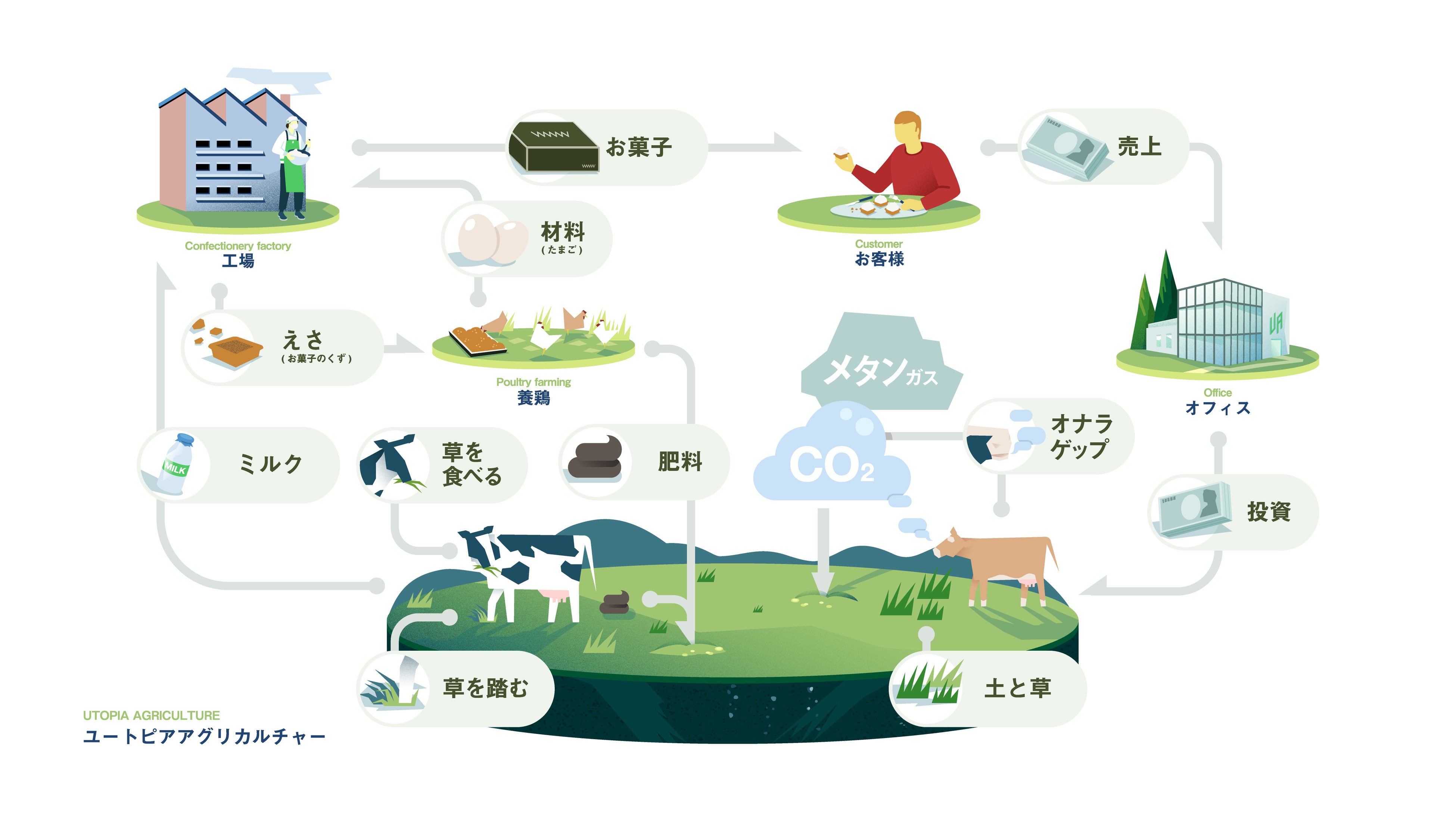「地球、動物、人に優しい牧場運営の実験と、その材料を使った美味しいお菓子作り」をコンセプトとするUAの「放牧の実験」の象徴となる場所を目指しています。