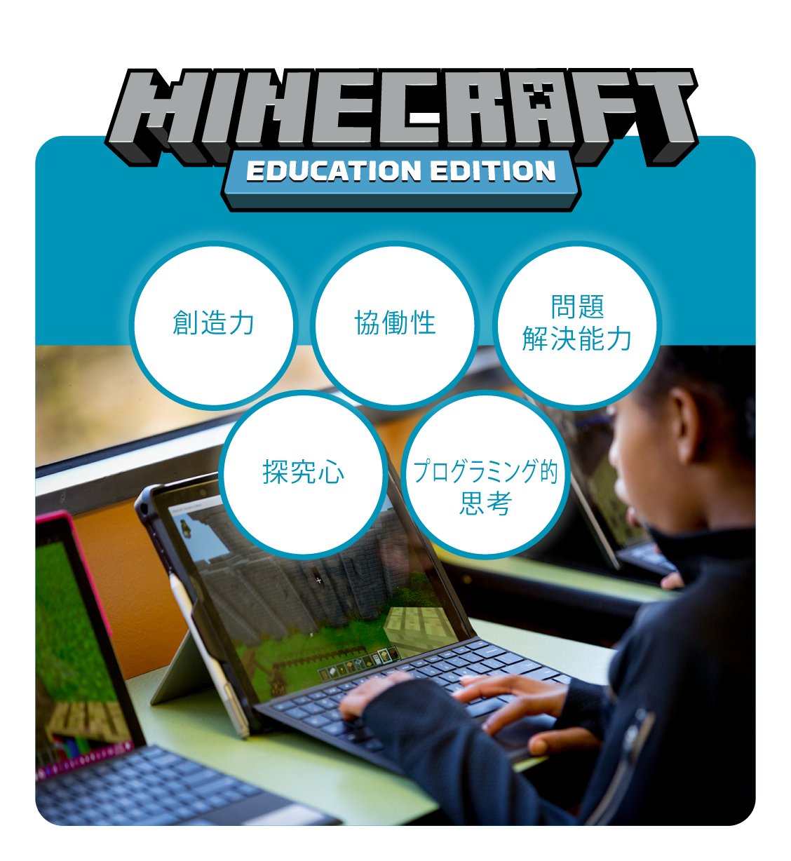 プログラミング体験および、デジタルなものづくりを通した問題発見・解決を目指すツールとして、世界的に人気のある「Minecraft」を活用し、全ての子どもたちがプログラミング教育や、デジタルなものづくりに挑戦できる場の醸成を目指します。