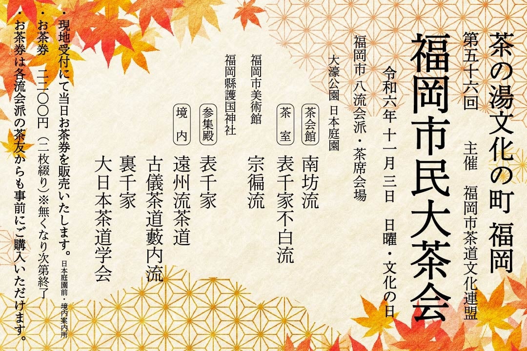 茶の湯文化の町・福岡 令和6年11月3日(文化の日) 第56回 福岡市民大茶会 開催のお知らせ