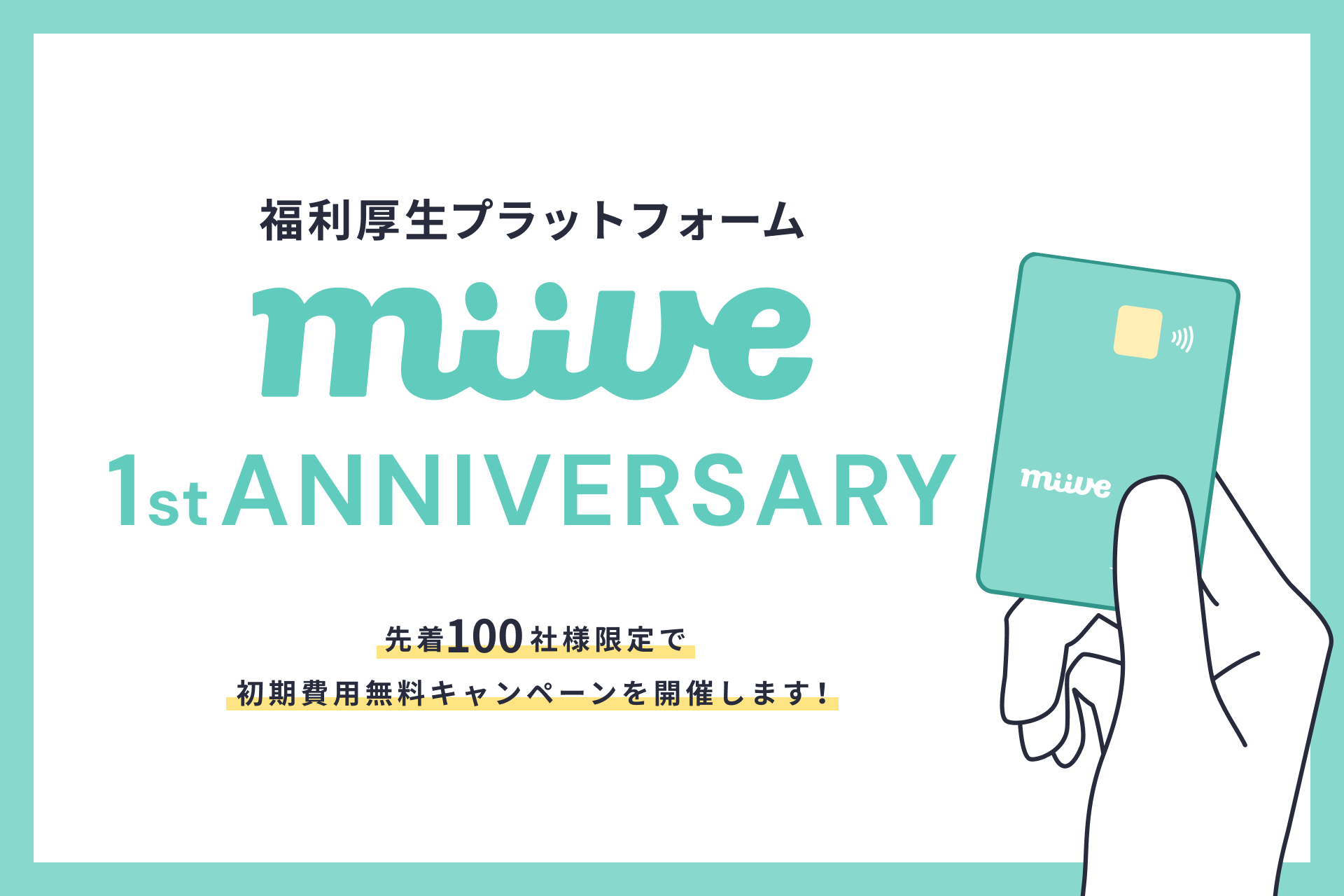福利厚生プラットフォーム「miive(ミーブ)」はおかげさまで正式ローンチから1周年を迎えました!先着100社様限定で初期費用無料キャンペーンを開催します!