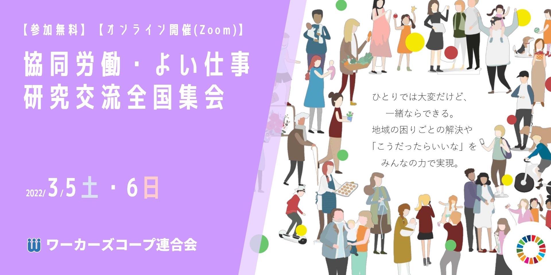 「働きがい」「生きがい」を大切にする「よい仕事」を学びあう全国集会を、3/5(土)6(日)にオンライン開催【ワーカーズコープ連合会】