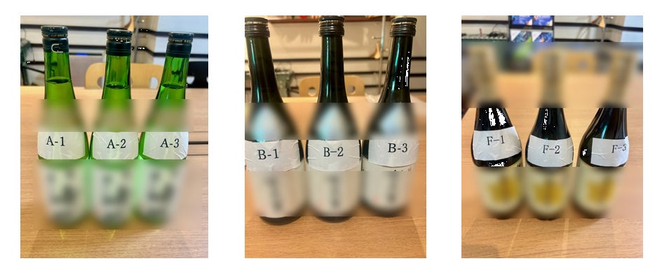 今回の鑑定では3つの県(新潟・群馬・京都)で作られた3銘柄、製造年月日が異なるものを合計9本使用しました。