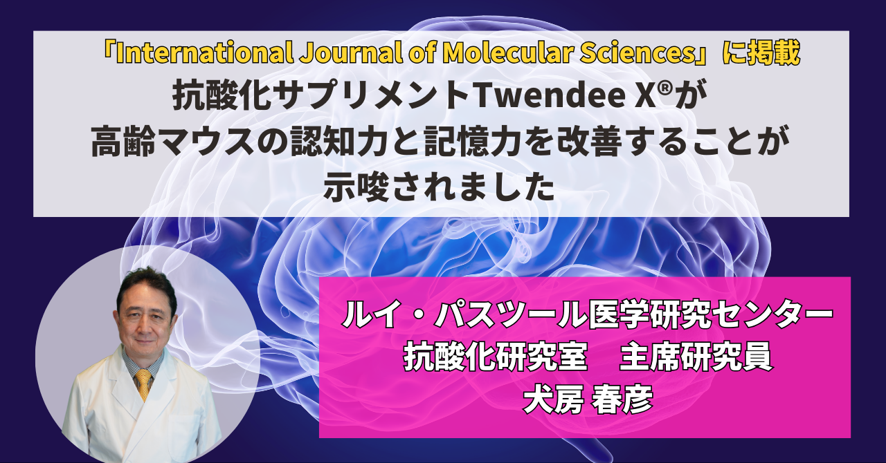 抗酸化サプリメントTwendee Xが高齢マウスの認知力と記憶力を改善することが示唆されました。