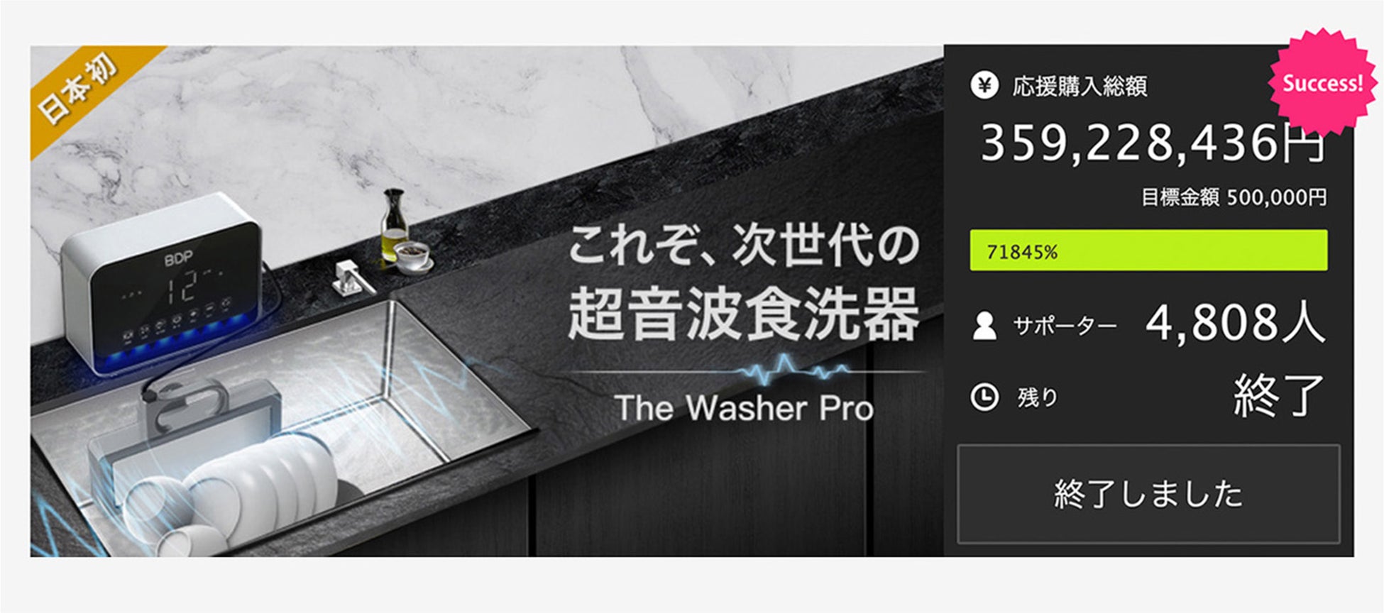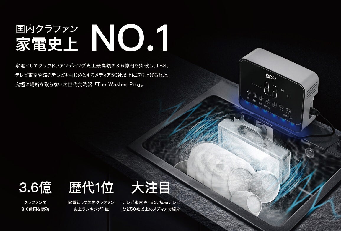 クラファン家電史上1位・テレビ出演多数で今話題の工事不要超音波食洗機「The Washer Pro」が、ビックカメラ有楽町店とビックカメラ.comで先行予約販売開始!