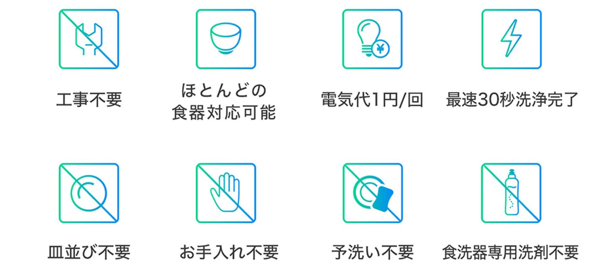 〜工事不要、究極に場所を取らない!電気代は1回1円!最短30秒で汚れが落ちる!今話題の次世代食洗機〜