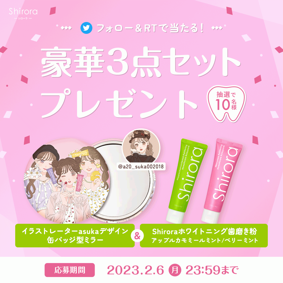 Shiroraは置いてるだけでとっても可愛い歯磨き粉なので、その可愛さが全面に出るようなイラストにしたい!とこだわりを詰めました。特にパッケージのカラフルな色味が魅力的に見えるように、イラストの女の子たちもパッケージの色味に合わせたファッションにしました。レモンミントとアップルカモミールミントのフレッシュな香りがイラストから伝われば嬉しいです♪