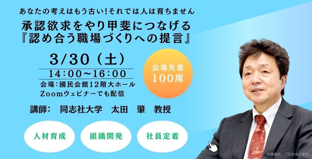 太田肇教授の豊富な著作と実績に基づく講演は、承認欲求を正しく理解し、それを組織のやりがいと成長につなげるための貴重な機会です。この公開講座を通じて、参加者の皆様が職場環境の向上と人材育成に新たな視点を得られることを願っています。