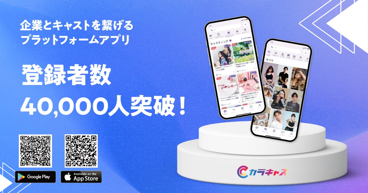 カラフルキャスティング株式会社(本社:東京都渋谷区、以下『カラキャス』)は、企業とキャストを繋げるプラットフォームアプリ『カラキャス( https://colorfulcast.com )』において、登録者数が40,000人を突破したことをお知らせいたします。
