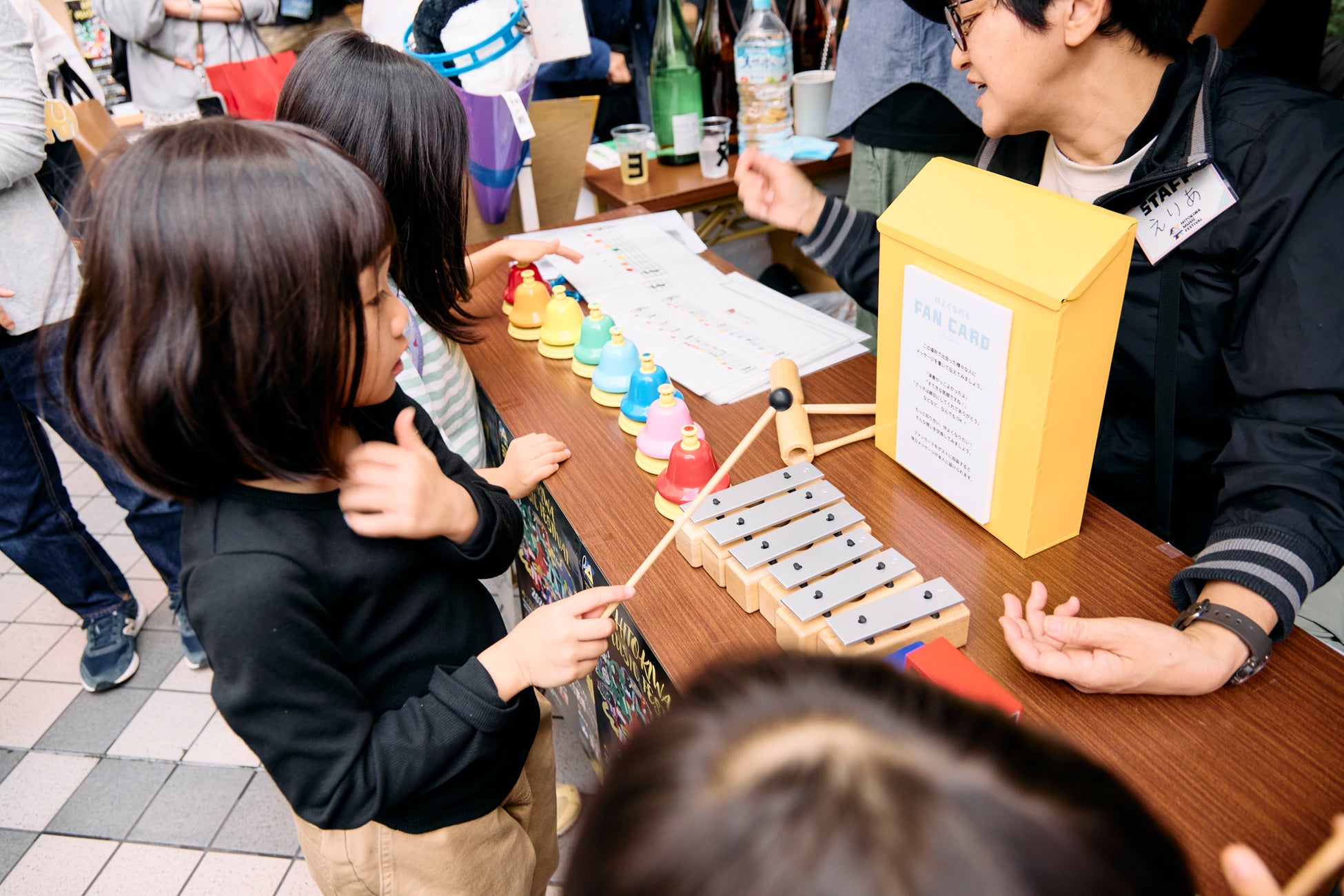 子ども向け楽器体験ワークショップのブースなど、ステージ以外での体験コンテンツも企画しています。