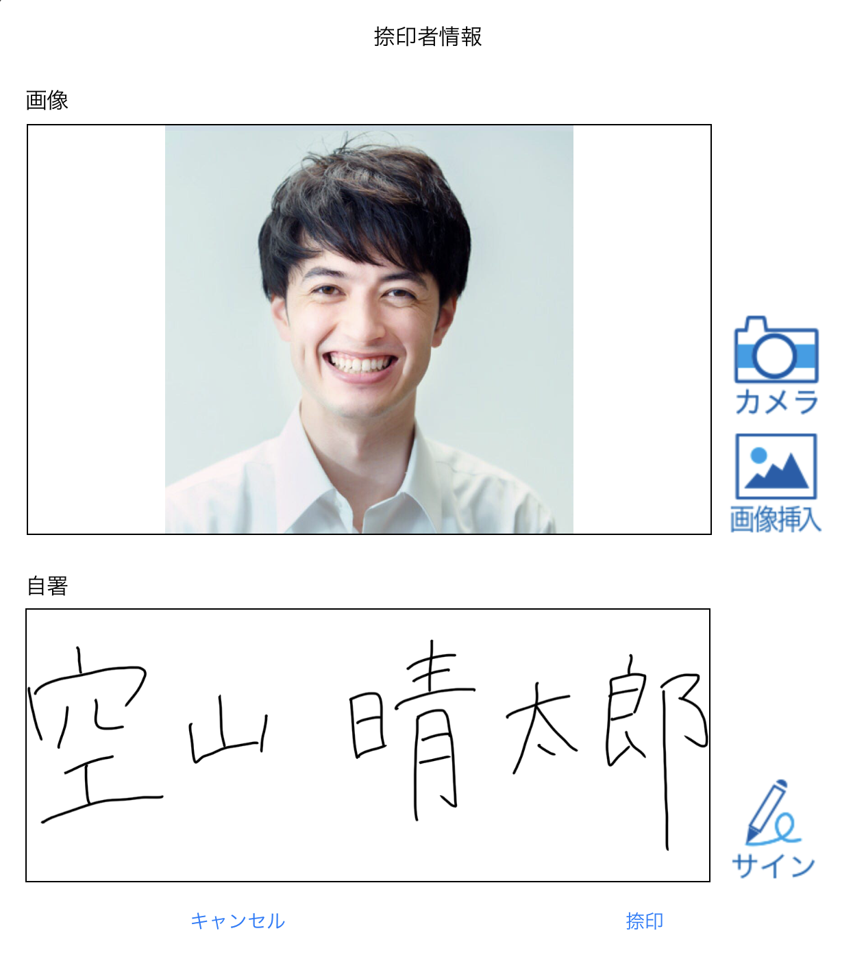 ※顔写真は、「あらかじめ用意した画像ファイルの読み込み」と「捺印時に端末のカメラを使って撮影して挿入」の2通りの方法で挿入できます。