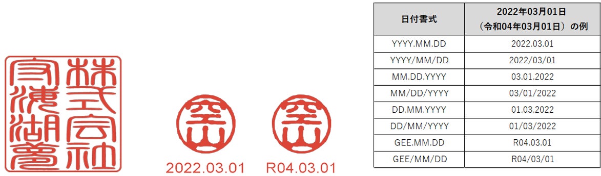 また捺印した印影の下に、日付を表示します。日付書式は8種よりお選びいただけます。