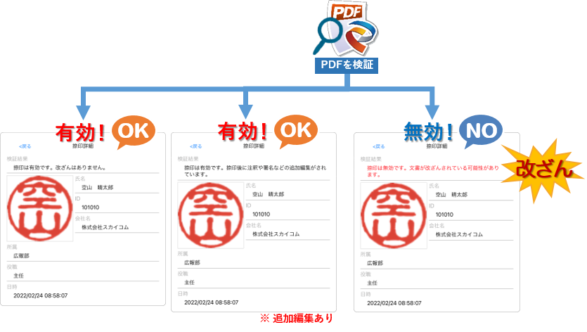 ~捺印後に文書が変更(改ざん・偽造)されていないかの改ざん検知も可能~