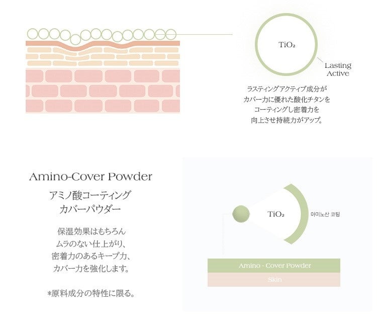 ラスティングアクティブ成分によりお肌がコーティングされ、密着力と持続力がアップ。