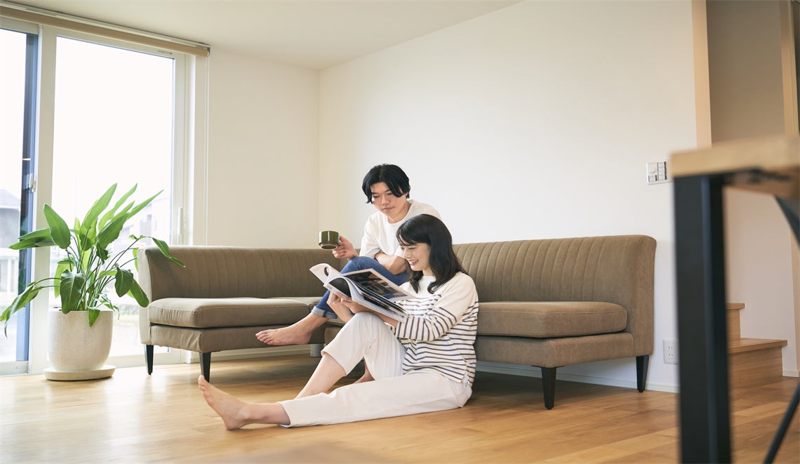 冷たい風が吹きつける冬の北陸。しかし、北陸の気候に合った高性能住宅「エツサス」のモデルハウス来場者は、10畳用エアコン1台で家中が心地よく温まる幸せを体感しています。高い断熱性能が威力を発揮し、厳しい冬でも住まいは快適そのものです。 その秘密は、北陸の気候に最適な工法として開発されたプレウォール工法と、標準仕様のトリプルガラス樹脂窓の組み合わせにあります。プレウォール工法は屋根・壁・床下の断熱材にフェノールフォームを採用し、国が定める断熱性能等級6をクリア。さらに、全棟で気密測定を実施して、高気密・高断熱住宅を実現しています。トリプルガラス樹脂窓は、寒さの厳しい冬の窓際でもほとんど冷気を感じません。室内の暖房ムラを最小限に抑えることができ、エアコン1台で家中がぬくもりに包まれます。適切な暖冷房で、電気代の削減も期待でき、年々高まる電気代への負担にも貢献します。