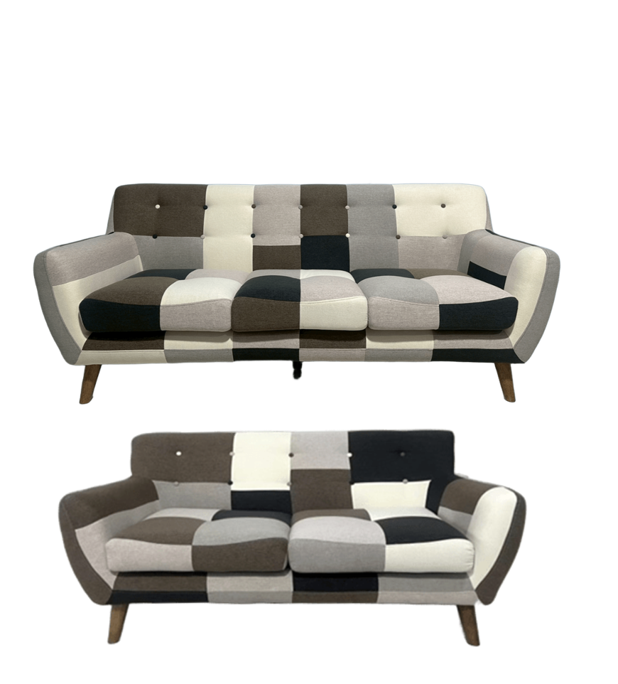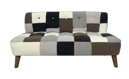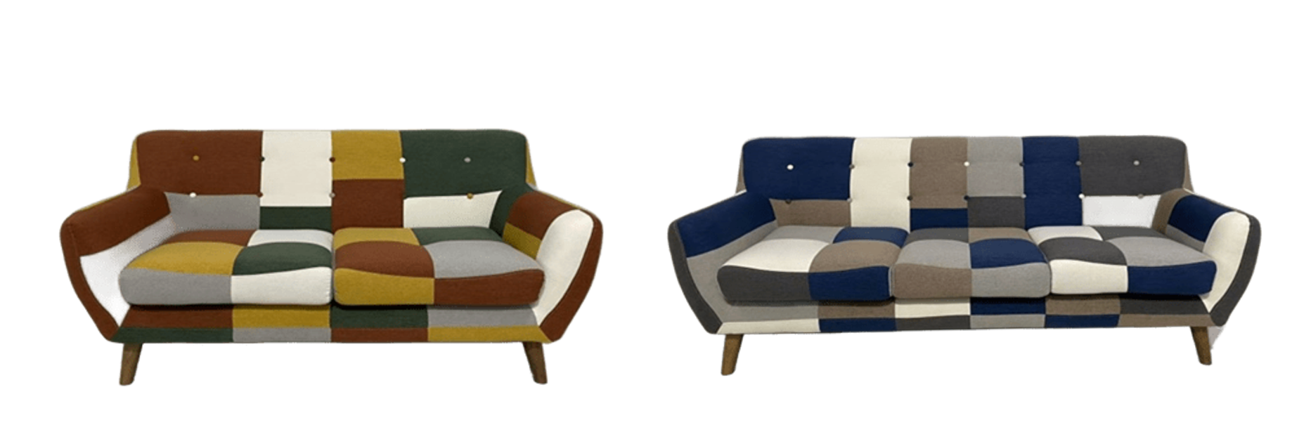 カラフルでありながらも落ち着いたトーンレトロでモダンな雰囲気が魅力のパッチワークソファ。木脚付きで北欧スタイルにも馴染みます。お部屋のアクセントに。