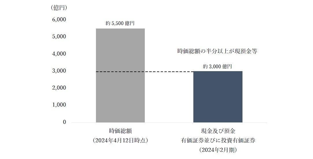 しまむらの事業は、未曾有のコロナ禍において事業環境が急激に悪化するなかでも、現預金水準が上昇を続ける堅固性を誇っています。しまむらの2024年4月12日時点での時価総額は約5,500億円ですが、2024年2月20日(期末)時点における現金及び預金、有価証券並びに投資有価証券の合計は約3,000億円であり(図表1を参照)、直近3事業年度の有形固定資産の取得に要した金額、82億円(2022年2月期)、44億円(2023年2月期)、76億円(2024年2月期)に比べて十分な内部留保の水準です。