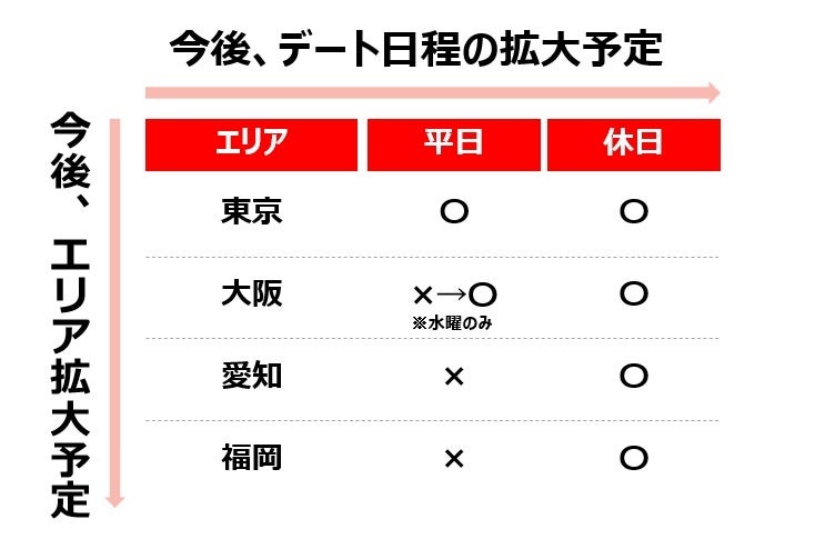 【本格導入】平日デート機能を大阪エリアにも本格導入!