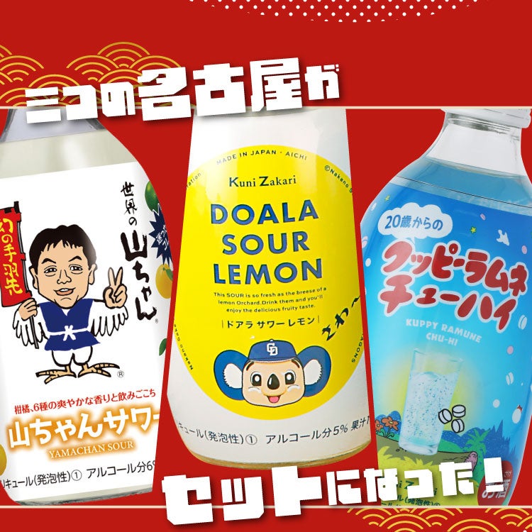 中埜酒造株式会社(本社:愛知県半田市、代表取締役社長:中埜 昌美)は、名古屋の企業とのコラボ商品、「世界の山ちゃん 山ちゃんサワー」、「ドアラサワー・レモン」、「20歳からのクッピーラムネチューハイ」をセットにした「名古屋三昧チューハイ・サワーセット」を9月2日より発売いたします。