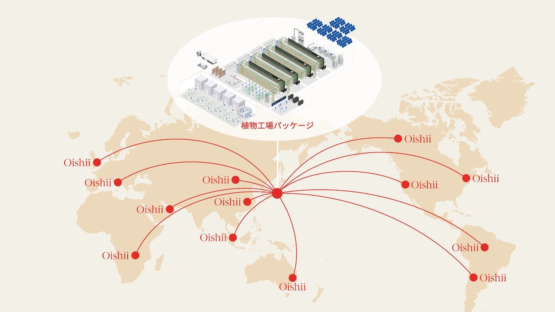 Oishii Farmは、植物工場のリーディングカンパニーになること、そして自動車産業に次ぐ、新たな日本発のグローバル産業の創出を目指しています。まずは東京を拠点に、世界展開に向けた基盤構築を進め、植物工場のターンキーソリューション(必要な技術や設備を詰め込んでパッケージ化し、個別開発なしでそのまま各地に展開可能な状態)の実現に取り組みます。