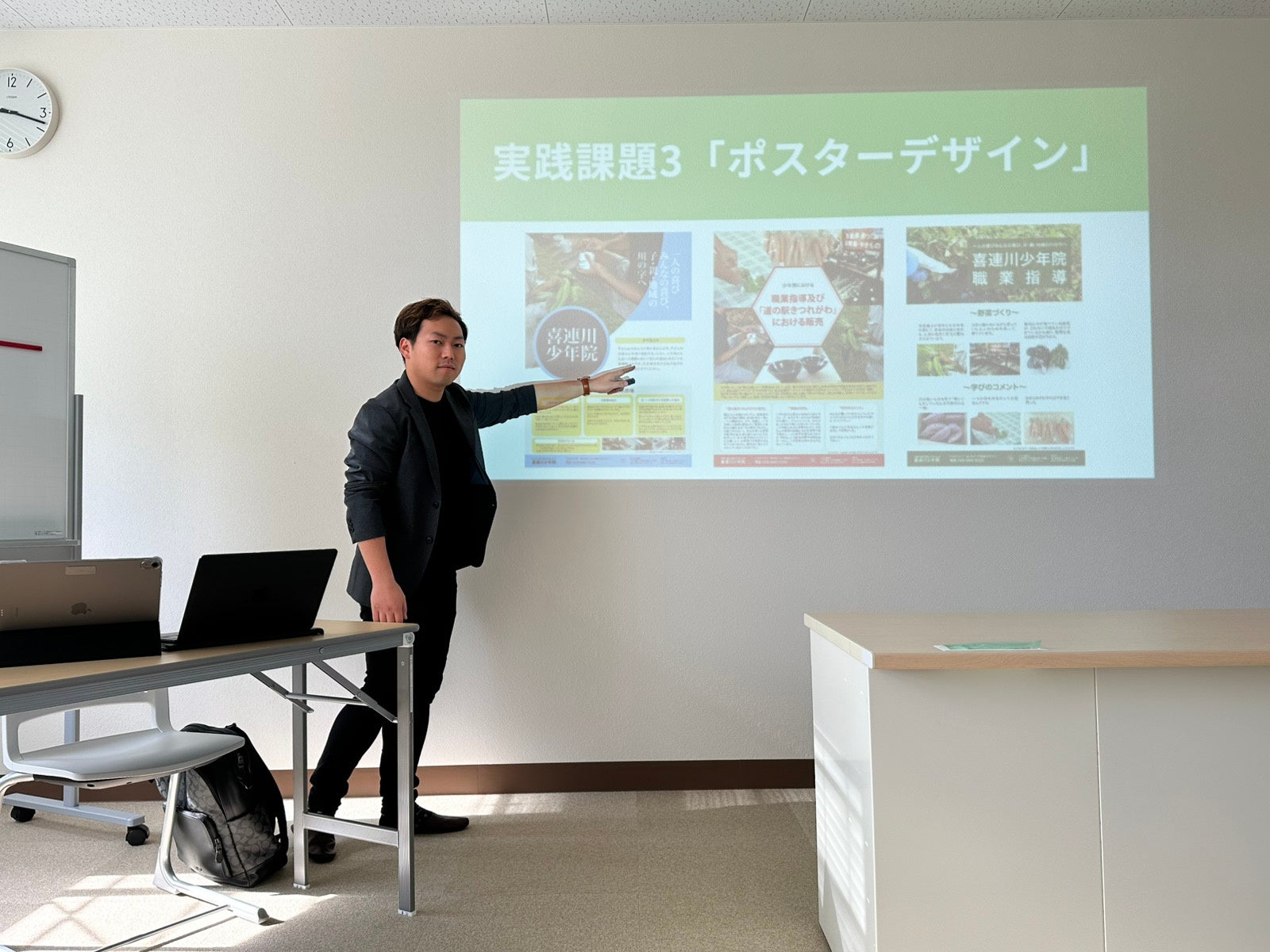 喜連川少年院でデザイン制作講座を実施。2024年10月23日・24日の2日間で、道の駅きつれがわの販売ブースに展示するポスターの制作をしました。
